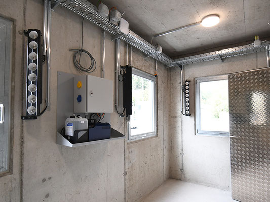 Die Ausstattung des neuen Gebäudes ist sehr einfach gehalten, da es sich um einen Zweckbau handelt. Die Oberflächen der Gewerke sind komplett aus rohem Beton erstellt und müssen keine weiteren Ansprüche erfüllen.