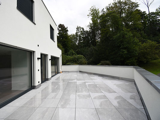 Das Erdgeschoss blieb weitgehend unverändert, während die beiden Garagen zu einer Einliegerwohnung mit Wohn- und Essbereich, zwei Zimmern sowie zwei Nasszellen umfunktioniert wurden. Das Obergeschoss wurde erweitert und öffnet sich zu einer grosszügigen Terrasse. Der Wohnbereich wurde mit modernen, offenen Räumen und einem neuen Zugang zum Dachgeschoss gestaltet. Letzteres wurde komplett neu aufgebaut und umfasst vier Schlafzimmer sowie zwei Nasszellen.