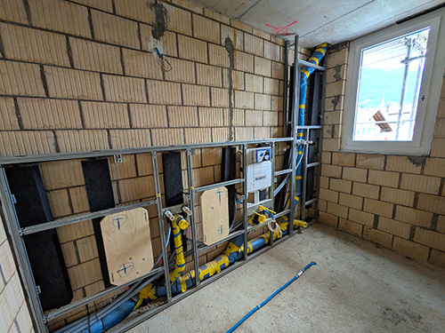 Beim Umbau des Einfamilienhauses an der Sonneggstrasse in Goldau geht’s zügig voran. Bereits konnten die Rohinstallationen abgeschlossen werden. Momentan laufen die inneren Gipserarbeiten auf Hochtouren.